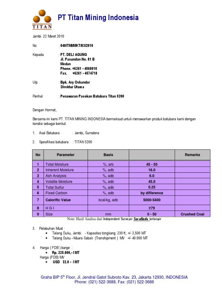 Surat penawaran adalah surat yang dibuat untuk menjalin sebuah kerjasama atau menawarkan barang maupun jasa pada suatu perusahaan ke umumnya surat penawaran tersebut dibuat oleh para investor dalam segi ekonomi berupa negosiasi mengenai penjualan dan pembelian barang. Surat penawaran harga bisa juga disebut sebagai alat pemasaran suatu produk atau jasa. Padang jaya bengkulu utara dengan hormat, hal : Penawaran kontrak pembelian cangkang sawit sehubungan telah selesainya pengangkutan cangkang sawit do. Surat penawaran barang /produk dan.
